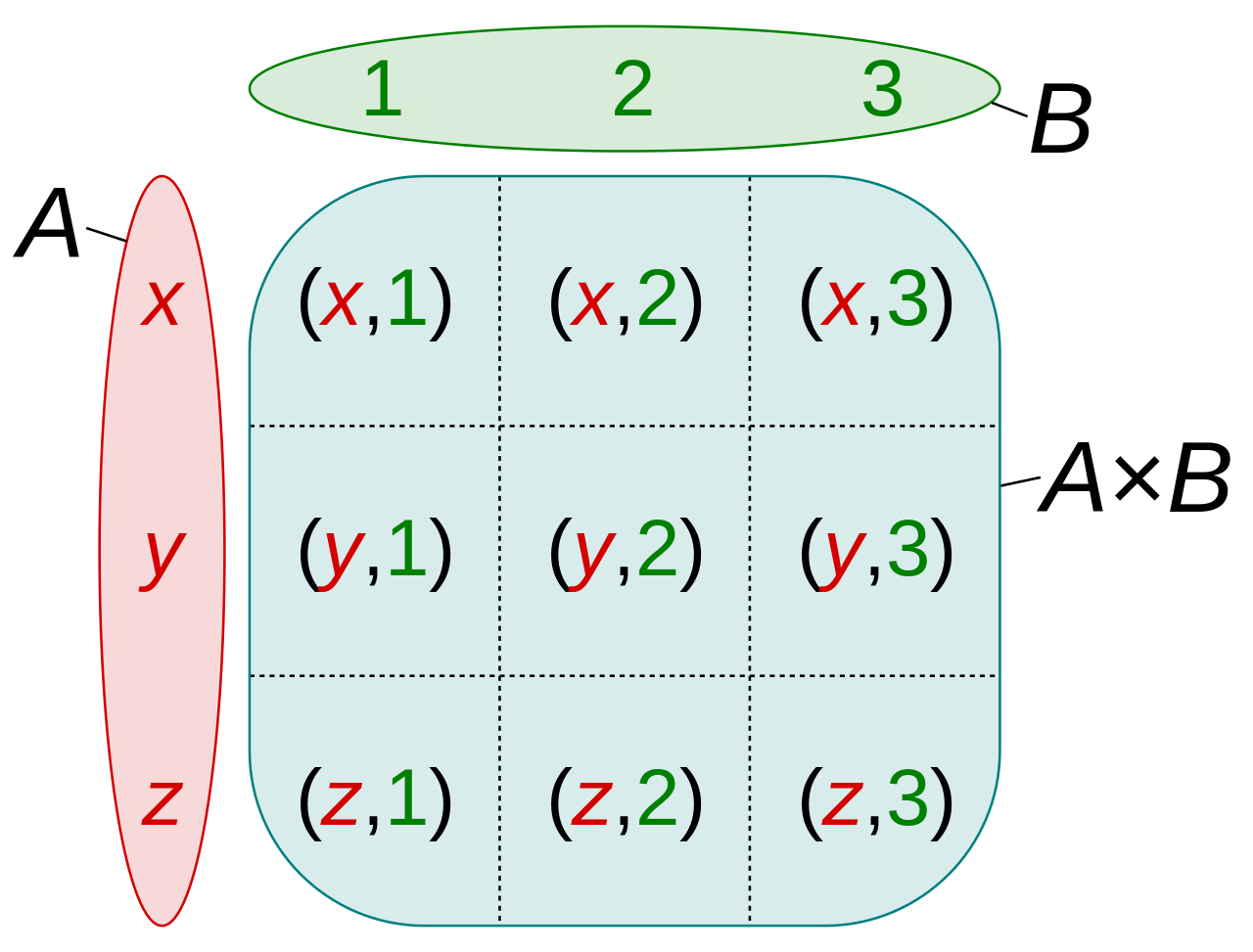 카테시안 곱(Cartesian Product)이라고도 부른다