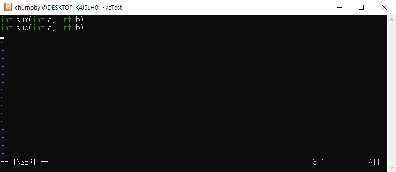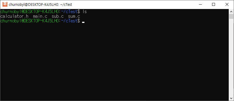 이제 cTest라는 디렉토리에 위에서 작성한 네 개의 파일이 생겼다. 이제 이 파일을 각각 object파일로 컴파일한 뒤 실행파일로 만들어 줄 것이다. 컴파일러는 gcc를 사용하도록 한다.
