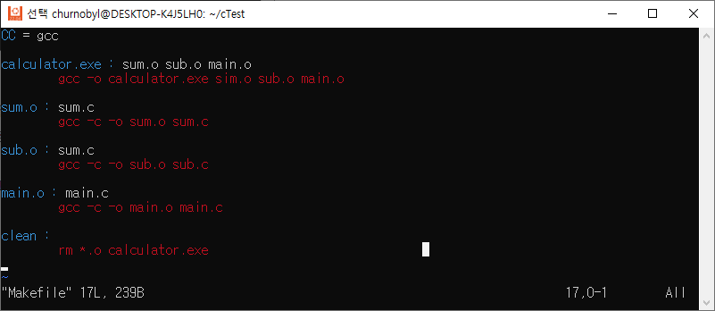 아래 clean은 Makefile에 Clean 매크로를 추가하는 코드다.