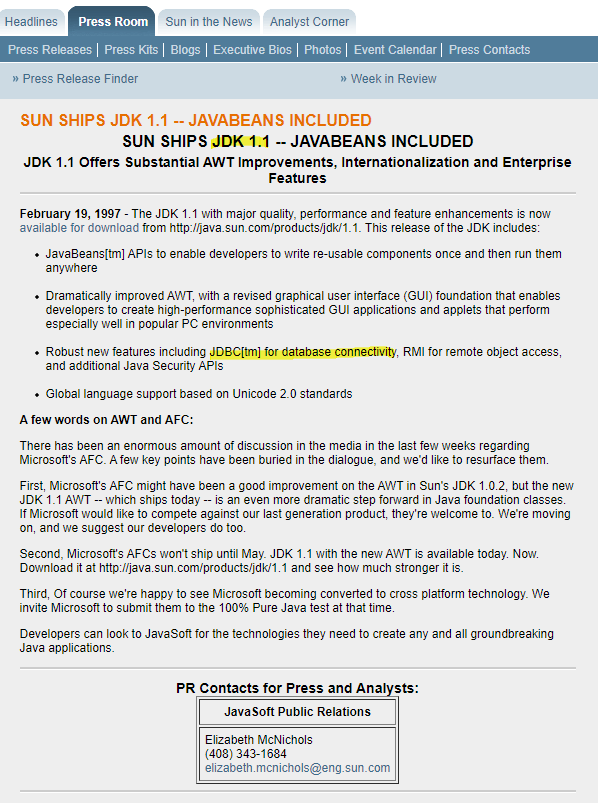 자바 진영은 이러한 문제를 고민했고, 1997년 JDK 1.1에서 Microsoft ODBC 방식을 차용한 JDBC를 소개했다. JDBC는 각 데이터베이스 벤더들이 통일된 양식을 따르도록 DB 연결 과정을 표준화한 API 규격이다.