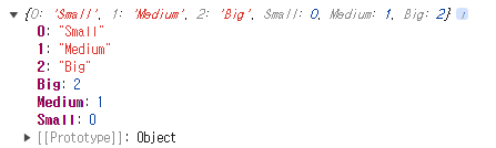 열거형은 JavaScript에는 존재하지 않는 개념이므로 이를 컴파일하면 자바스크립트의 객체로 변환한다. 예를 들어 ButtonType은 컴파일될 때, Small, Medium, Big 멤버가 추가되고 각각 0, 1, 2 값을 가진다. 다시 반대로도 접근할 수 있도록 0, 1, 2 멤버도 추가되고 각각 Small, Medium, Big 값을 가진다.