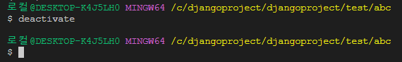 만약 가상환경을 종료하고 싶다면 deactivate명령어를 입력하면 된다.