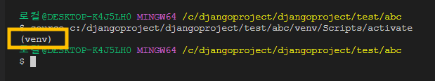위와 같이 venv가 실행되었다는 표시가 뜨면 성공이다.