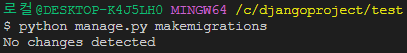 그렇지 않으면 우리가 아무리 모델을 변경해주고 makemigrations 명령어로 migration을 만들어 주려고 해도 아래와 같이 감지하지 못한다