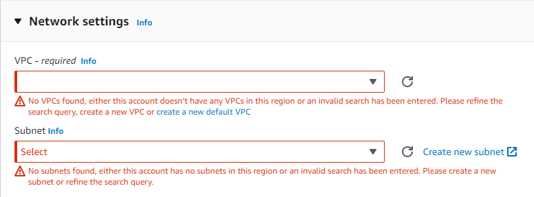 Virtual Private Cloud(VPC) 즉, 가상 사설 클라우드는 개인 혹은 기관 만의 작은 가상 데이터 센터를 구축(내 나와바리 만들기)하는 것이라고 생각하면 쉽다. VPC가 없었던 시절, 우리가 EC2 인스턴스들을 만들면 우리도 모르는 아마존 서버 어딘가에 인스턴스들이 여기저기 퍼져 있었다고 한다. 즉 AWS를 이용하던 회사A의 인스턴스와 회사B의 인스턴스가 같은 네트워크를 사용하고 있었다는 말이다. 그러다 2009년 VPC 서비스를 출시하고 난 이후부터 회사A와 회사B가 서로 완전히 격리된 독자적인 네트워크 시스템을 사용할 수 있게 되었다. 현재는 EC2 인스턴스를 생성할 때 아래와 같이 VPC와 서브넷을 함께 꼭 설정해주어야 한다.