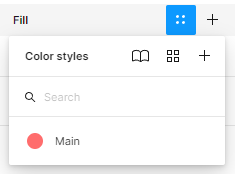 이제 우리가 설정해 준 요소의 색상은 Main이라는 컬러 스타일로 바인딩되어 Main의 색이 바뀔 때마다 함께 색상이 변한다. 이제 다른 요소들도 Main 컬러 스타일로 바꿔주자. 바꿔줄 요소를 선택한 뒤 Fill에서 다시 style 버튼을 누르면 우리가 지정한 Main컬러가 생겼다. Main컬러를 누르면 이제 해당 요소도 Main컬러로 바인딩된다.