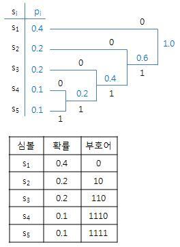 압축하고자 하는 정보에서 자주 등장하는 정보는 짧은 비트로 표현하고 거의 등장하지 않는 정보는 긴 비트로 표현하는 가변 길이 코드를 이용한 무손실 데이터 압축 기법