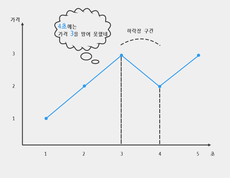 하락장일 경우에 현재 가격보다 높은 이전 가격들이 여러개가 있을 수 있으므로 while을 통해 전부 처리해주었다.