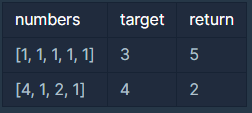 주어진 numbers를 차례로 더하거나 빼서 target이 되는 방법의 수를 구하는 문제