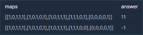 마지막으로 끝 좌표인 maps[-1][-1]를 출력해주는데 이 값이 1보다 크다면 그대로 출력해주고 1 이하라면 벽으로 막혀 도달할 수 없는 경우이므로 -1을 출력해준다.