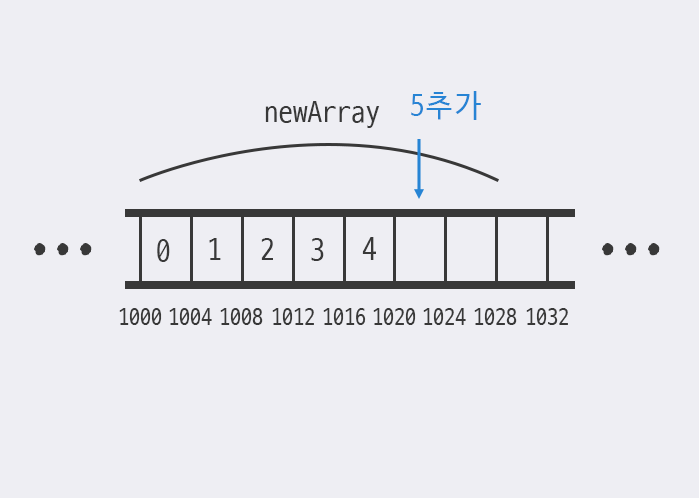 첫째, newArray배열의 크기가 부족하다면 newArray배열 뒤의 메모리 공간에 이어서 채워넣으면 안되는가