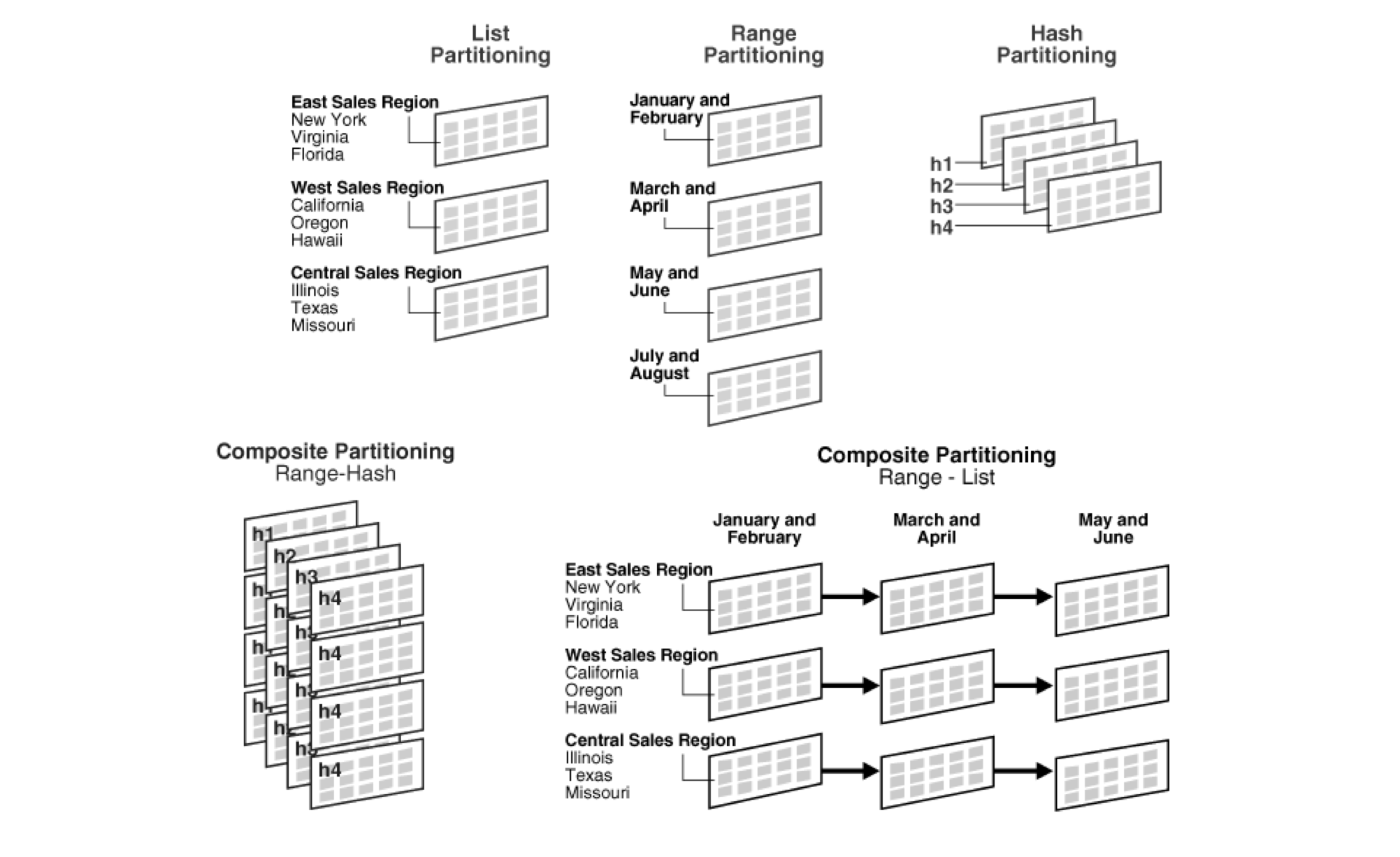 데이터베이스에서 파티셔닝을 이용해 테이블을 분할할 수 있다. 파티셔닝 기법은 소프트웨어적으로 데이터베이스를 분산 처리해 성능이 저하되는 것을 방지하고 관리를 보다 수월하게 할 수 있도록 한다. 즉, 논리적으로는 하나의 테이블이지만 여러 개의 데이터 파일에 분산되어서 저장한다.
