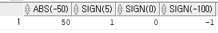 SELECT ABS(-50), SIGN(5), SIGN(0), SIGN(-100) FROM DUAL;