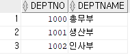 INSERT INTO DEPT VALUES (1000, '총무부');