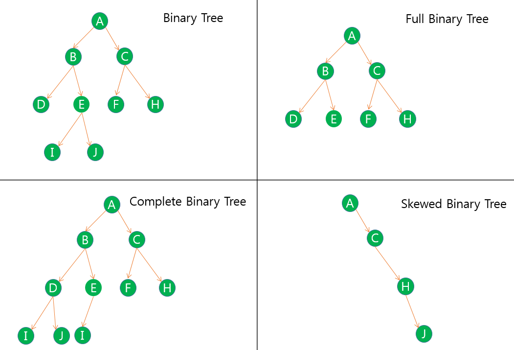 이진 트리는 각 노드가 최대 2개의 자식 노드를 가질 수 있는 특징이 있다. 그러므로 임의의 노드의 두 자식 노드를 각각 왼쪽 자식, 오른쪽 자식으로 구별해 부른다.
