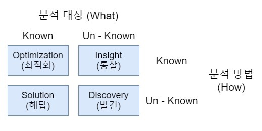 • 분석은 분석의 대상(What)과 분석의 방법(How)에 따라 4가지로 나누어진다