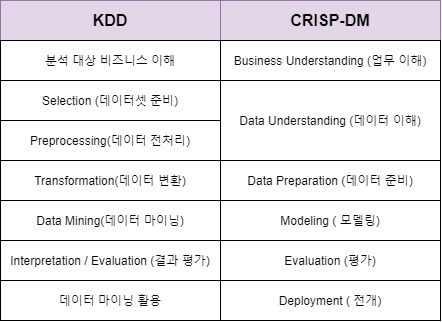 업무 목적 파악, 상황 파악, 데이터 마이닝 목표 설정, 프로젝트 계획 수립 |
