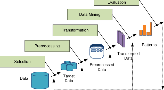 • KDD(Knowledge Discovery in Databases)는 1996년 Fayyad가 프로파일링 기술을 기반으로 데이터로부터 통계적 패턴이나 지식을 찾기 위해 활용할 수 있도록 체계적으로 정리한 데이터마이닝 프로세스